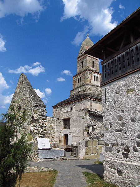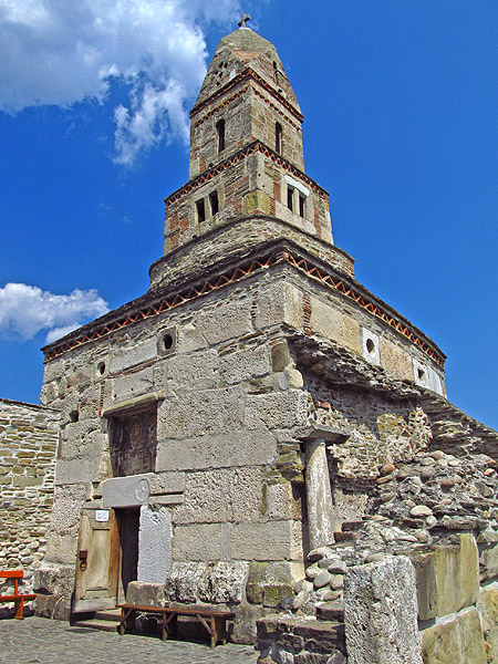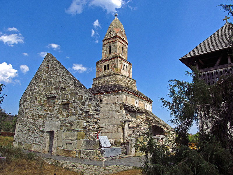 Świątynia zbudowana jest na planie kwadratu (6 x 6m) z elementów (cegieł, kamieni, kolumn) pochodzących z ruin starożytnych budowli rzymskich. Dach całego wykonany jest jest z płyt kamiennych. Dodatkowe pomieszczenia zostały dodane od strony południowej w XIV-XV wieku. Cenne malowidła pochodzą z roku 1443, wykonane przez zespół prowadzony przez maestra Stephena, jednego z pierwszych znanych malarzy rumuńskich.
