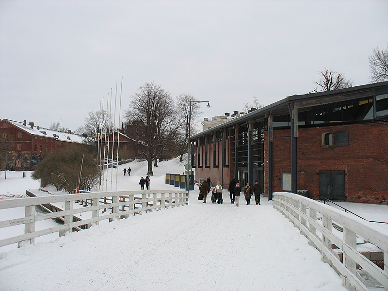 Dziś mróz zelżał - tylko minus 5. Najpierw zanosimy bagaże do przechowali na dworcu kolejowym, a potem główna atrakcja dzisiejszego dnia Suomenlinna - twierdza Finlandii zbudowana na sześciu wyspach celu ochrony Szwecji przed Rosją. Ważnym sprzymierzeńcem i w dużej mierze sponsorem twierdzy była sprzymierzona Francja. Szwedzi rozpoczęli budowę w 1748 roku, gdy Finlandia nadal była częścią ich królestwa. W 1703 roku car Piotr Wielki ustanowił Sankt Petersburg nową stolicą Rosji. Do ochrony miasta zbudował twierdzę i bazę morską w Kronstadt (obecnie dzielnica Piotrogrodu). Rosja stała się siła z którą należało się liczyć na Bałtyku. W styczniu 1748 roku młody Augustin Ehrensvärd przybył bezpośrednio dowodząc budową twierdzy. Pod szwedzkim panowaniem Sveaborg (pierwotna nazwa fortyfikacji) był aż do roku 1808 gdy została poddana praktycznie bez walki, co było wielkim zaskoczeniem dla załogi. Decyzja dowódcy którym był Carl Olof Cronstedt, do dziś nie została wyjaśniona (najprawdopodobniej powodem byłą chęć ocalenia ludności cywilnej). Pod rosyjskim panowaniem Suomenlinna przeżyła ciężkie chwile podczas wojny Krymskiej (1854-56). Potężna angielsko-francuska flota bombarduje twierdzę przez 47 godzin - na skutek zaniedbań obrońcy nie mogą odpowiedzieć ogniem, ponieważ ich działa nie mają odpowiedniego zasięgu. Zniszczenia są bardzo poważne. W chwili uzyskania przez Finlandię niepodległości Suomenlinna zyskała obecną nazwę. Funkcje wojskowe pełniła aż do 1973 roku, gdy została przekazana cywilnej administracji (obecnie jedynym wojskowym obiektem jest szkoła marynarki wojennej). Znajduje się tutaj wiele muzeów, kawiarni i innych atrakcji jak Vesikko - jedyna fińska łódź podwodna (Finlandia po II wojnie światowej nie może używać okrętów tego rodzaju). Od 1991 roku Suomenlinna wpisana jest na listę dziedzictwa UNESCO. Dostać na wyspy można się za pomocą specjalnego statku pływającego pomiędzy twierdzą a Kauppatori. Sam piętnastominutowy rejs w zimie jest nie lada przeżyciem ponieważ wody zatoki fińskiej skute są lodem. Nasze zwiedzanie rozpoczynamy od dość efektownego kościoła, a następnie udajemy się do głównego muzeum (jedyne czynne w zimie). Na zakończenie spacer po wyspie poprzez Vesikko, armaty i stare koszary.