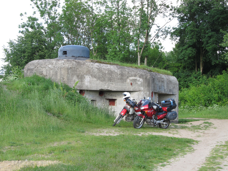 Nadszedł w końcu dzień wyjazdu. Ostatnie godziny w pracy to siedzenie, jak na szpilkach. Jeszcze tylko wyjechać ze stolicy i wyprawa rozpoczęta. Pierwszy cel to zajazd Żubryn przy granicy z Litwą, gdzie mamy spotkać się w trójkę - ja, Patryk i Krzysiek. Po drodze zwiedzamy bunkry w Nowogrodzie i przejeżdżamy asfaltową drogą przez Biebrzański Park Narodowy. Zmieniam zębatkę na 15 - powinny spaść obroty i spalanie. Jutro czeka nas ponad 800 km asfaltu, więc po kolacji dość szybko kładziemy się spać.